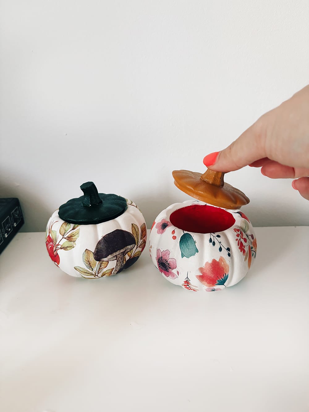 Aprende a elaborar objetos decorativos con resina acrílica, un tipo de resina natural y no tóxica, con un resultado resistente y duradero, parecido a la cerámica. En el taller elaboraremos una cajita con forma de calabaza de lo más otoñal, que luego decoraremos con la técnica del decoupage. ¡Elige el estilo del estampado para una cajita única!