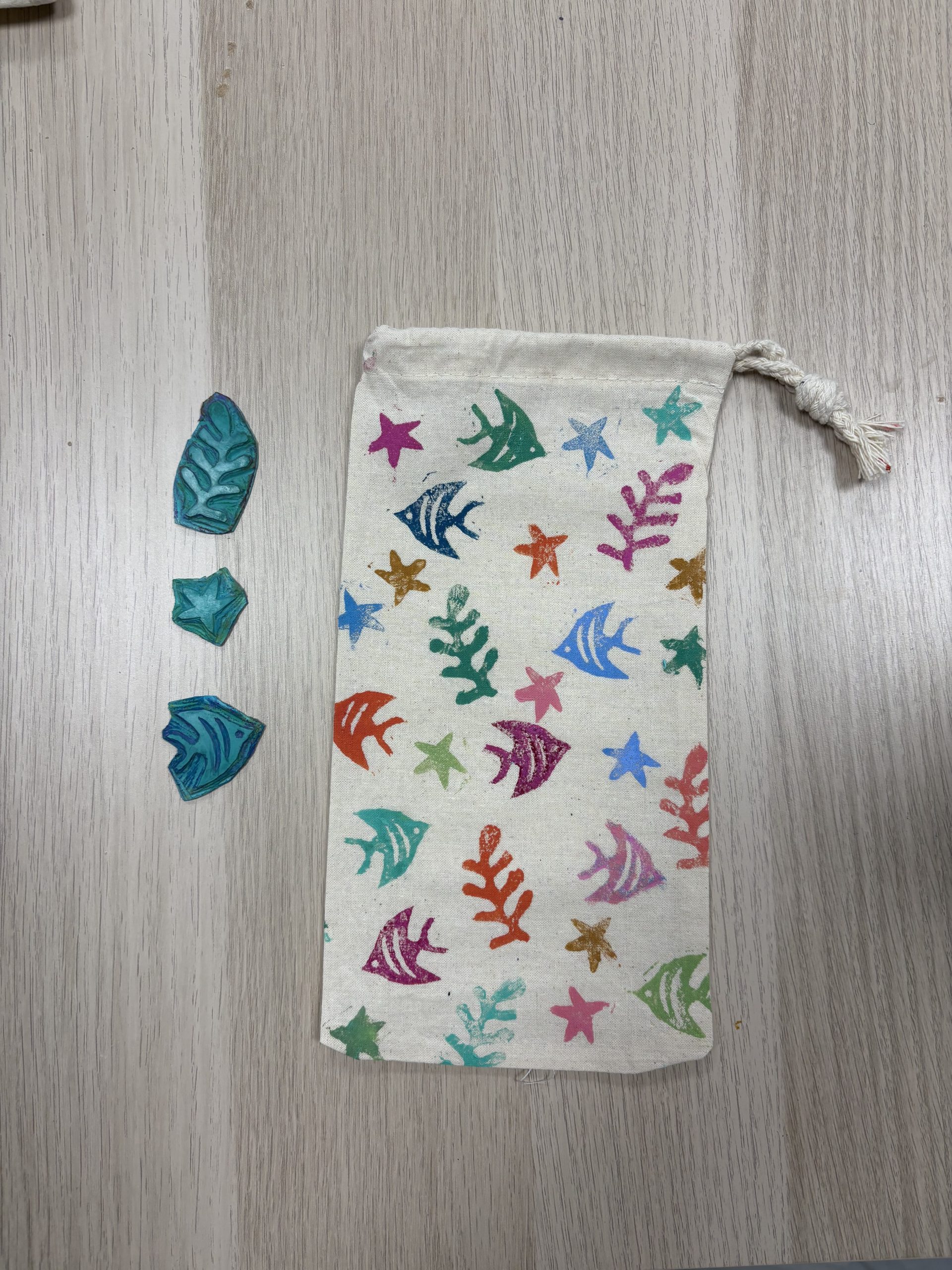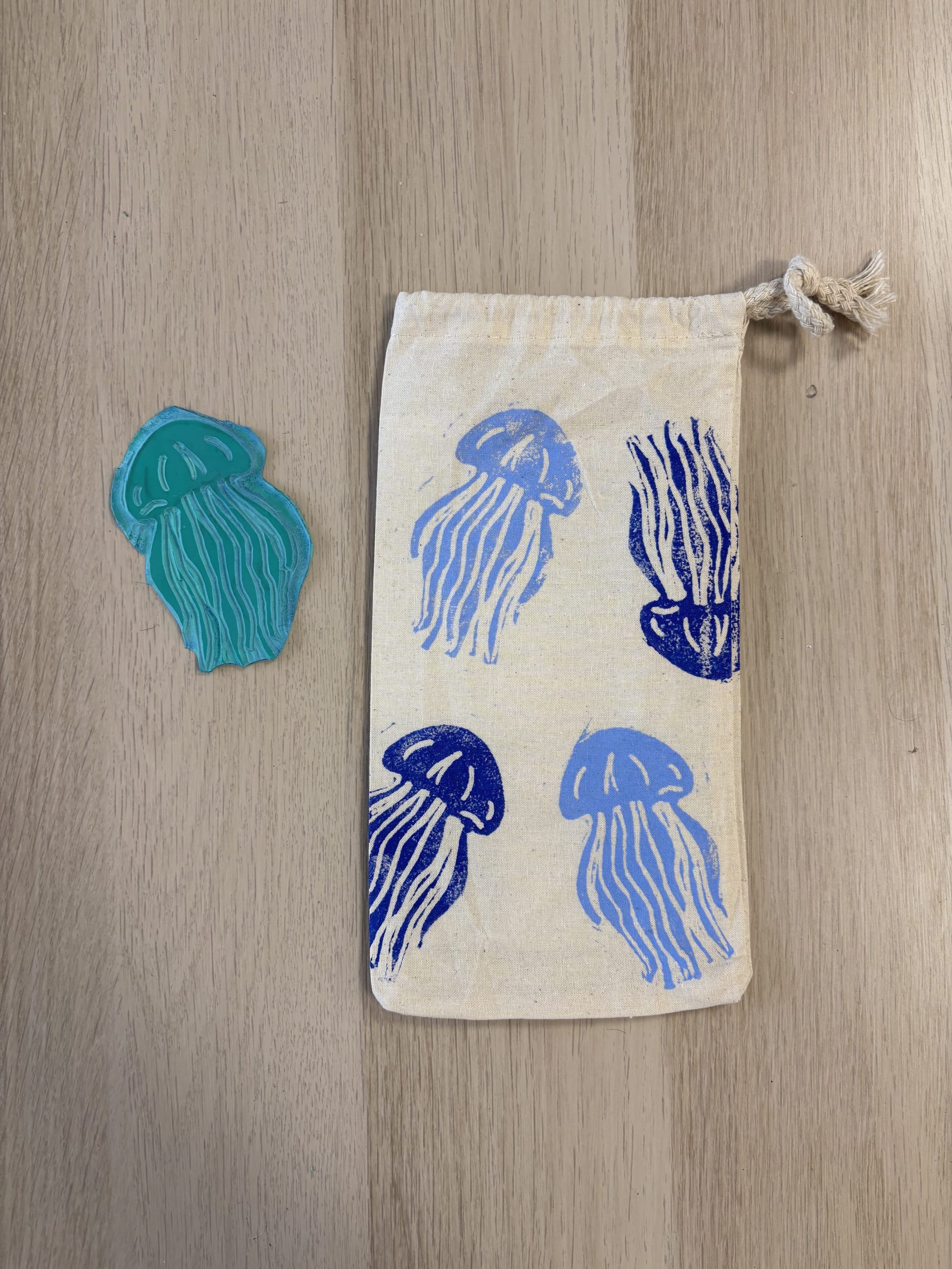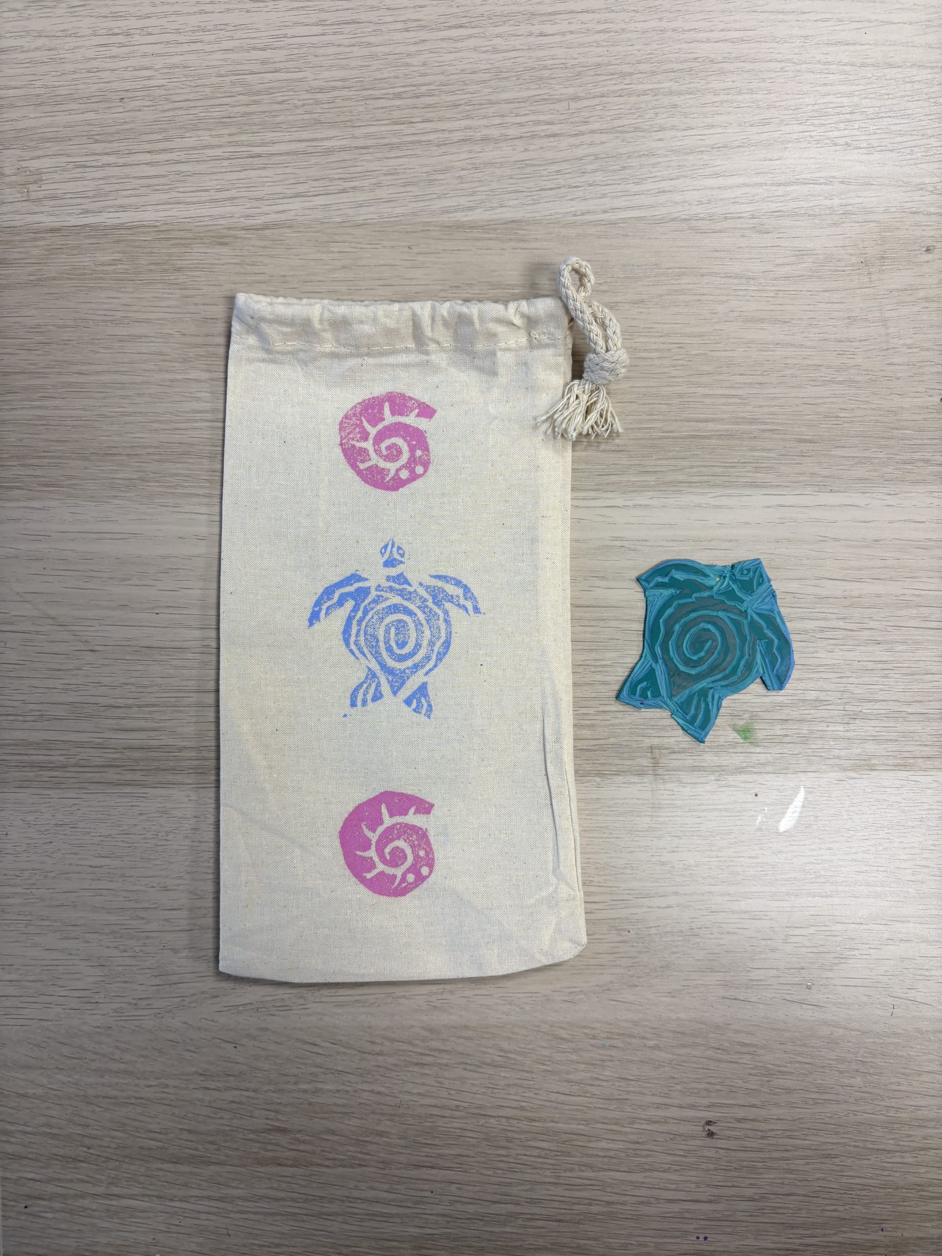 La creación de sellos es una de las formas de estampación más corrientes de todo tipo de objetos. Aprenderás a crear tu propio sello, y luego estamparás con él una práctica bolsita de tela.