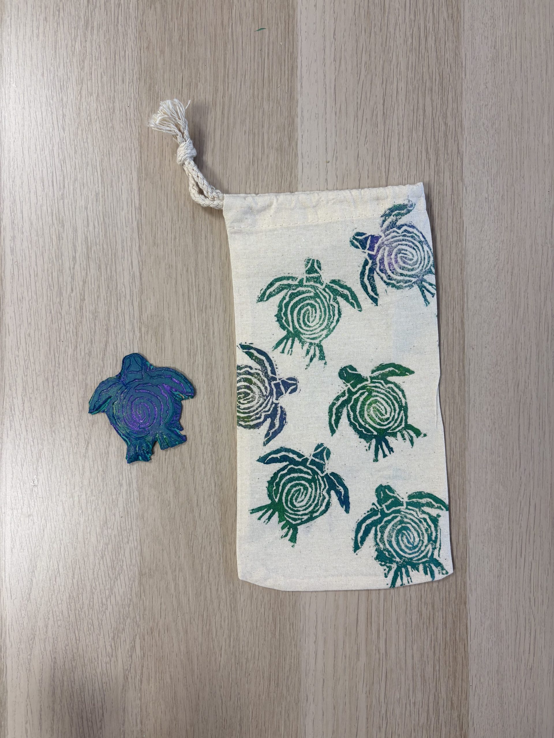 Realizamos la estampación en bolsas de tela como las de la imagen, si preferís otro soporte (una tote bag, por ejemplo), consultad.