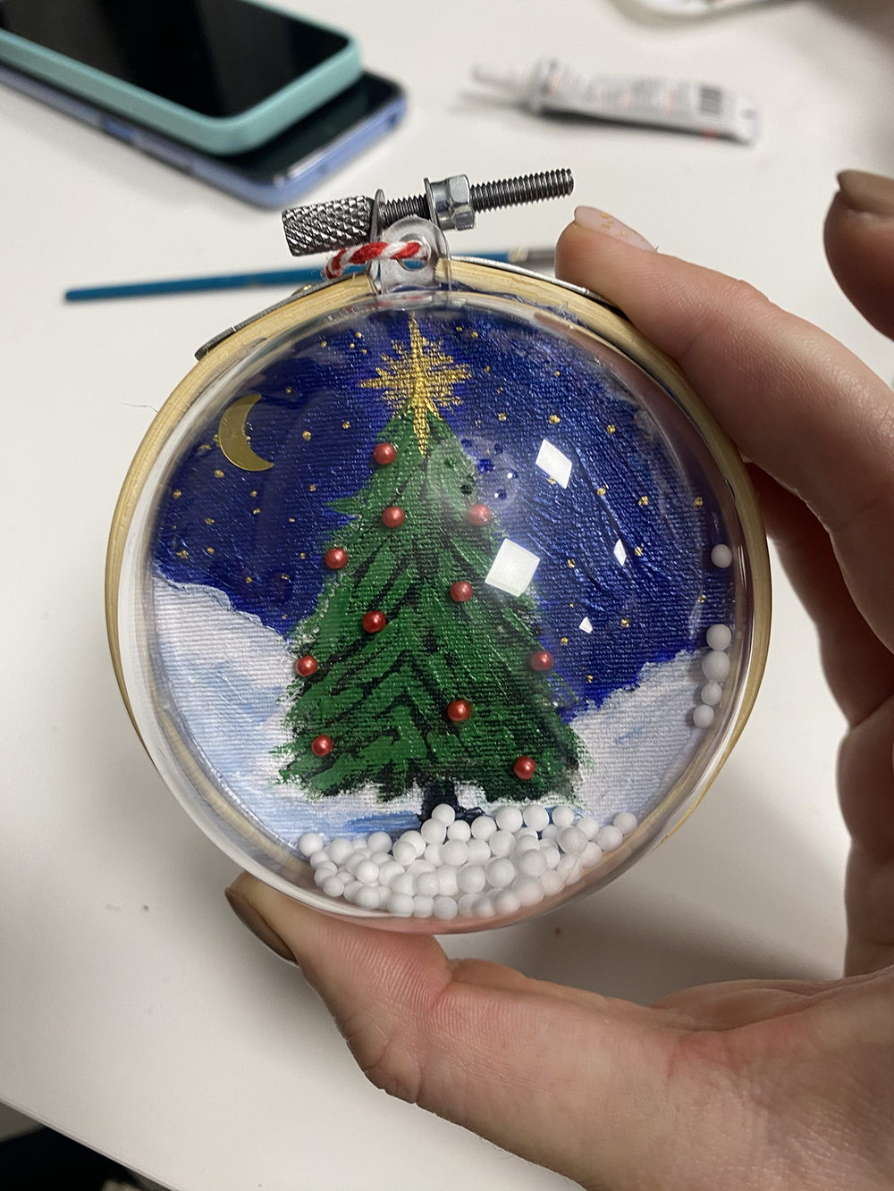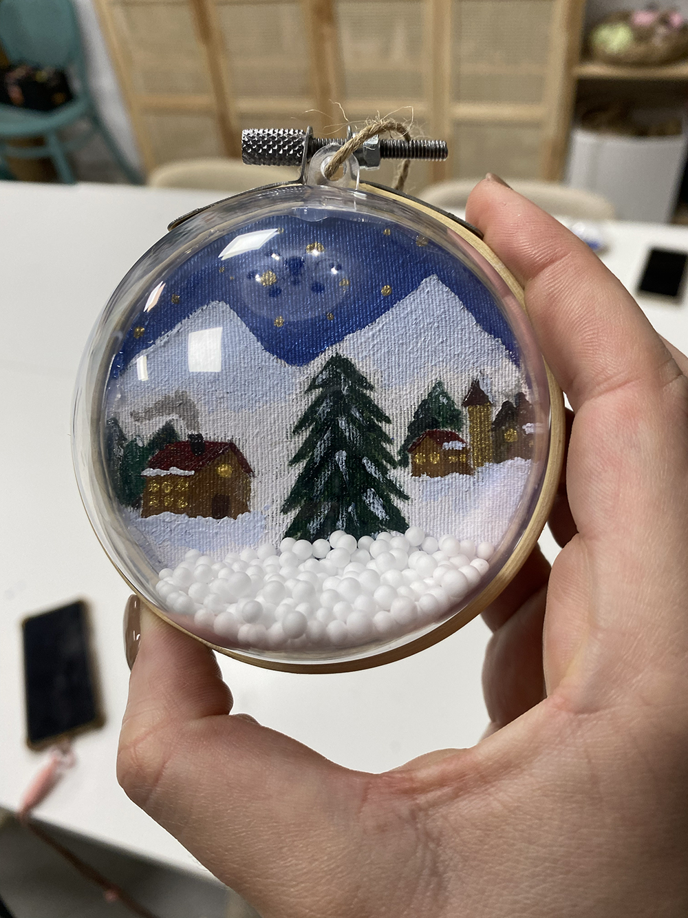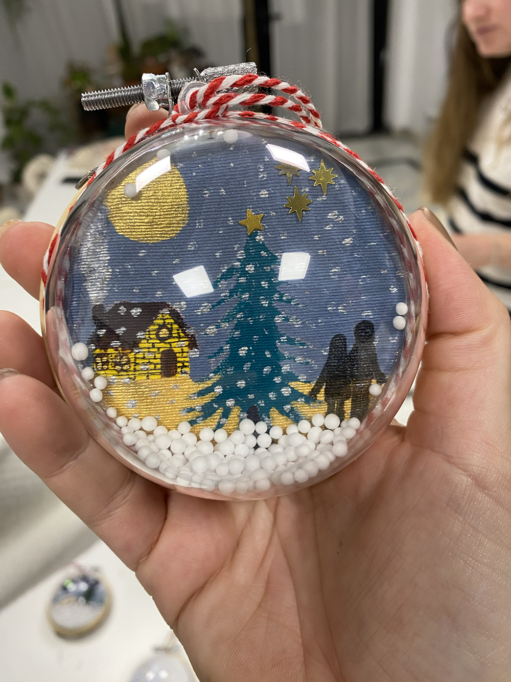 Una bolita que lo tiene todo: pintura, adornos ¡y nieve!