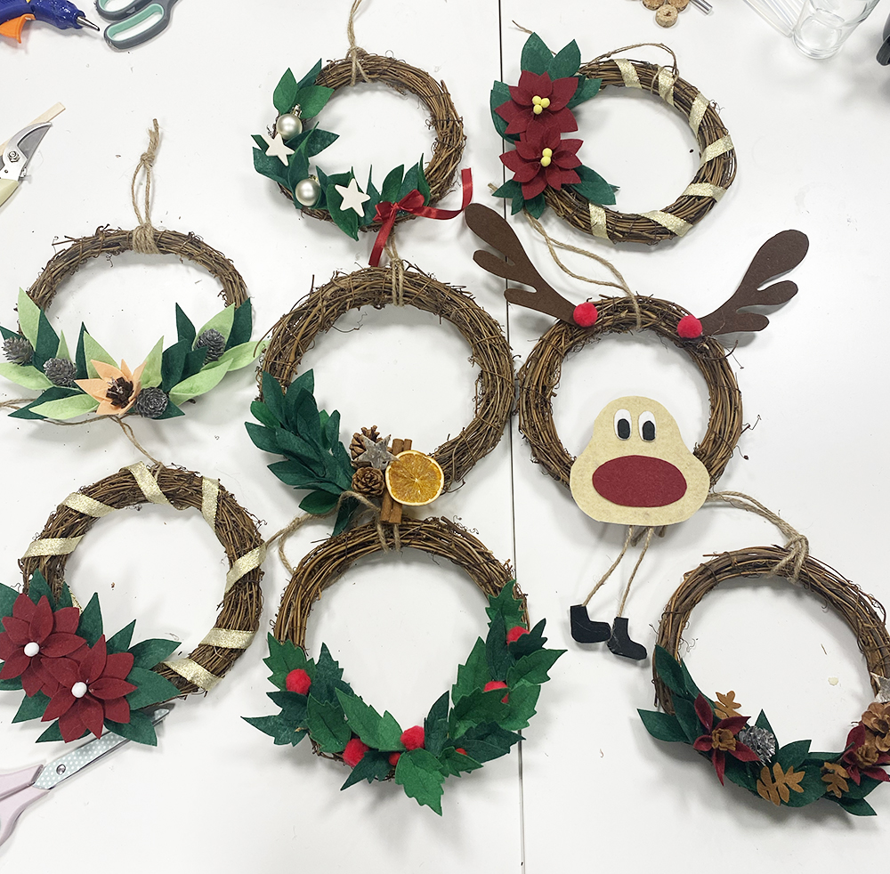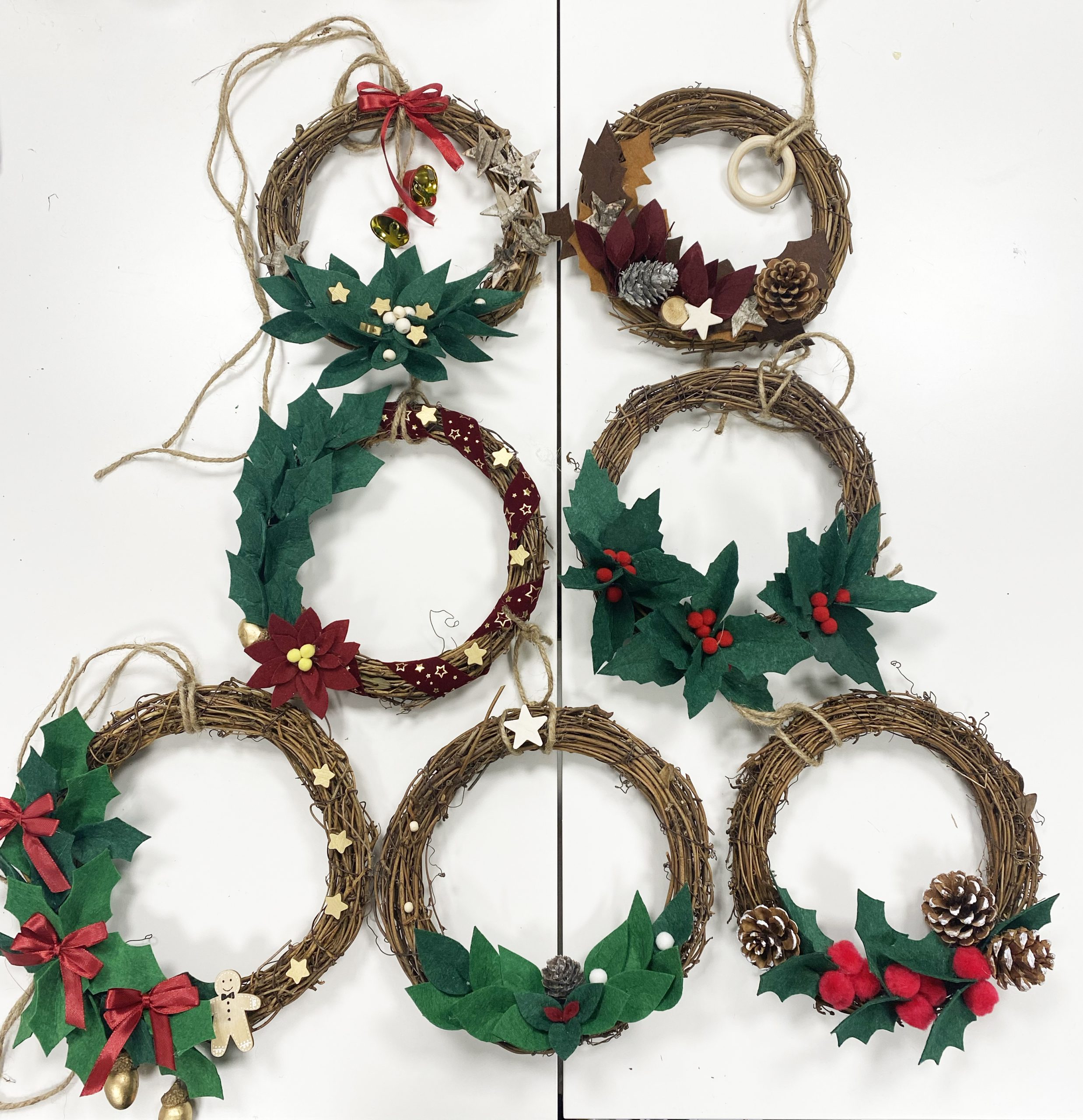 Crearéis una corona de Navidad para toda la vida, con materiales que no mueren, y que aguantan perfectamente que los guardes en una caja de un año para otro. Crearemos diferentes con fieltro, y terminaremos de adornar con todo tipo de cintas, adornos y fantasías varias.
