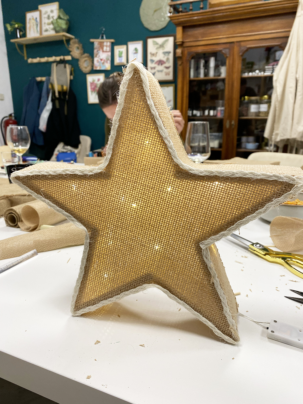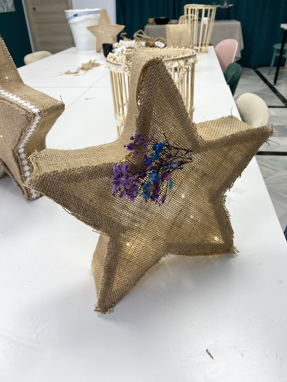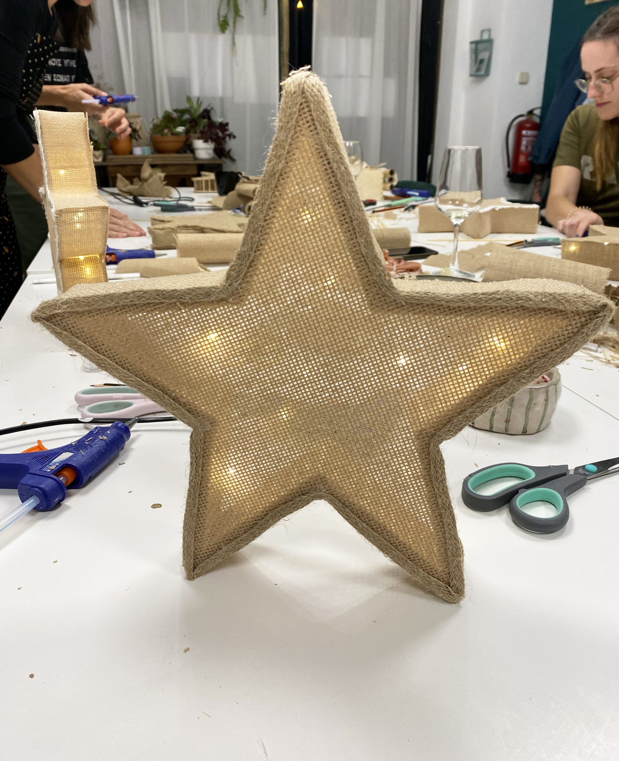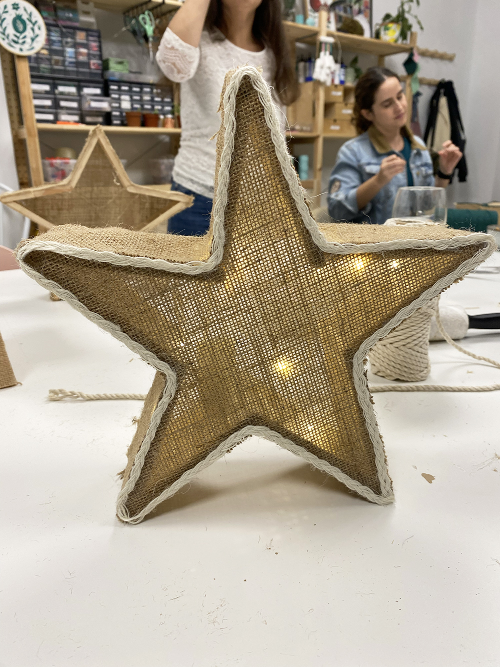 Si lo vuestro es el estilo boho, cread un adorno de estrella, que luego podréis decorar con todo tipo de cuerdas y abalorios. Además, incluye luces led para que aporte un ambiente más cálido y navideño. Aunque seguro que… ¡termináis usándola todo el año!