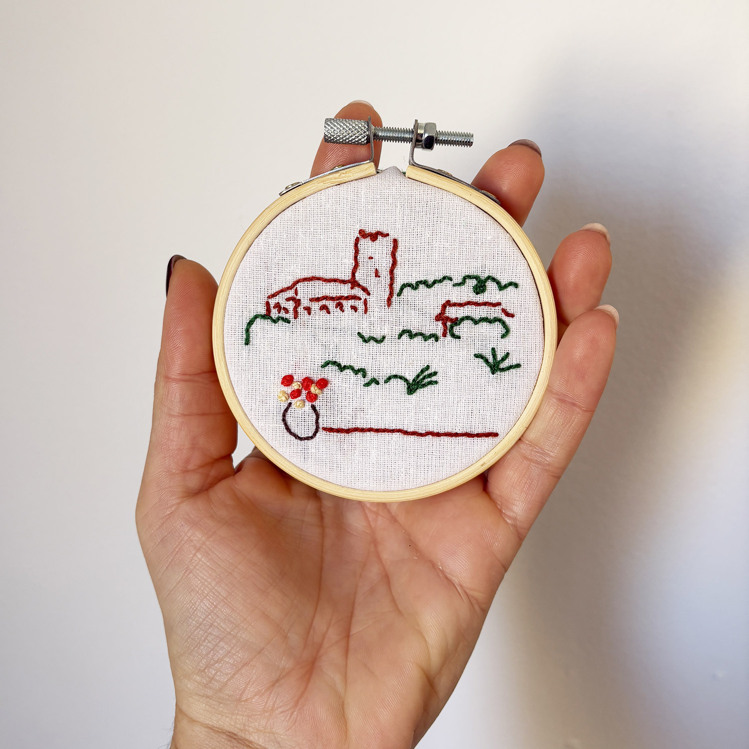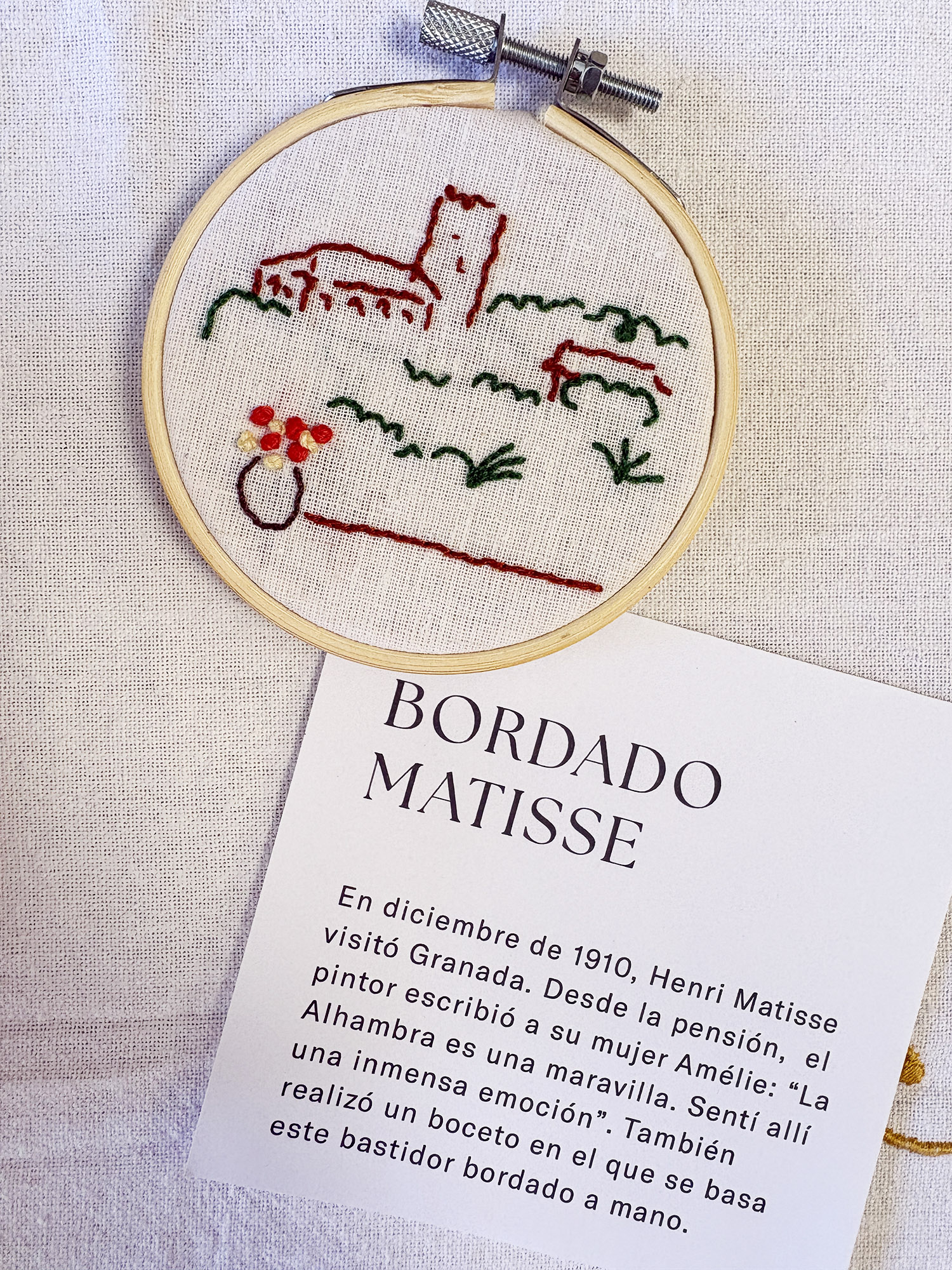 En 1910 Matisse visitó Granada, y realizó un boceto de la Alhambra. Bastado en él, este mini bastidor bordado a mano que queda precioso. Se trata de bordados realizados totalmente a mano, no hay dos iguales. Perfectos para decorar un rincón especial de la casa, o para decorar.