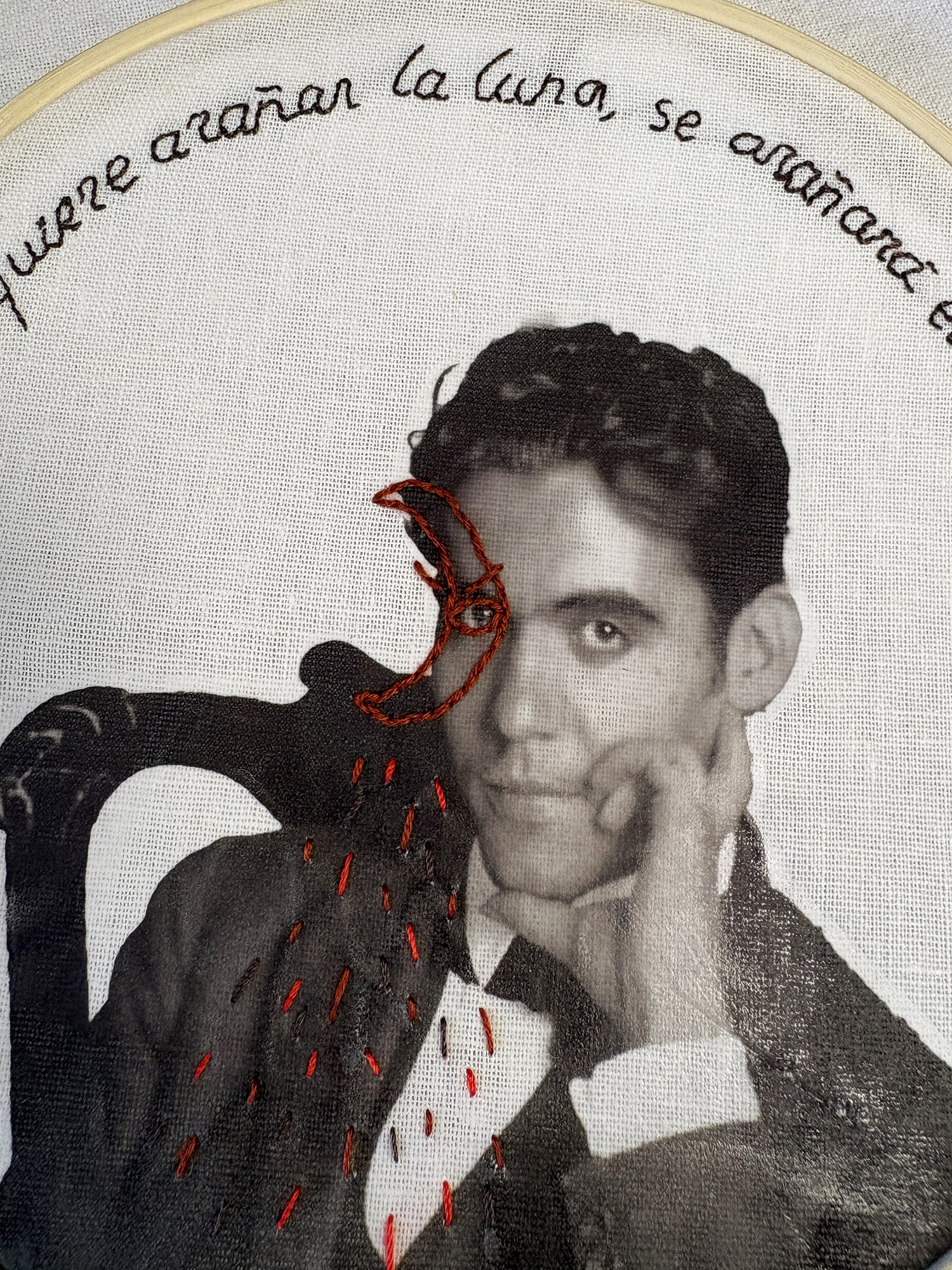 Bordado original con fotografía y verso de Federico García Lorca. Se trata de bordados realizados totalmente a mano, no hay dos iguales. Perfectos para decorar un rincón especial de la casa, o para decorar.