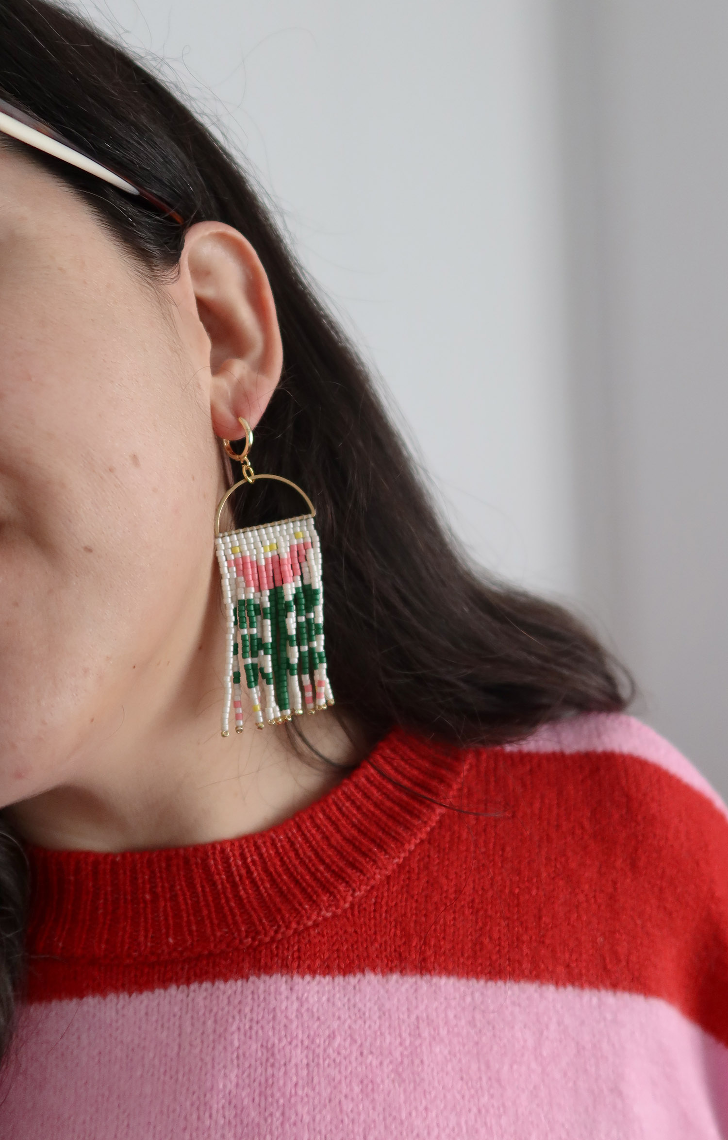 ¿Te gusta crear en la comodidad de tu hogar? En esta cajita encontrarás (casi) todo lo necesario para crear tus pendientes de abalorios con flecos colgantes, con diseño de tulipanes. ¡Quedan preciosos!