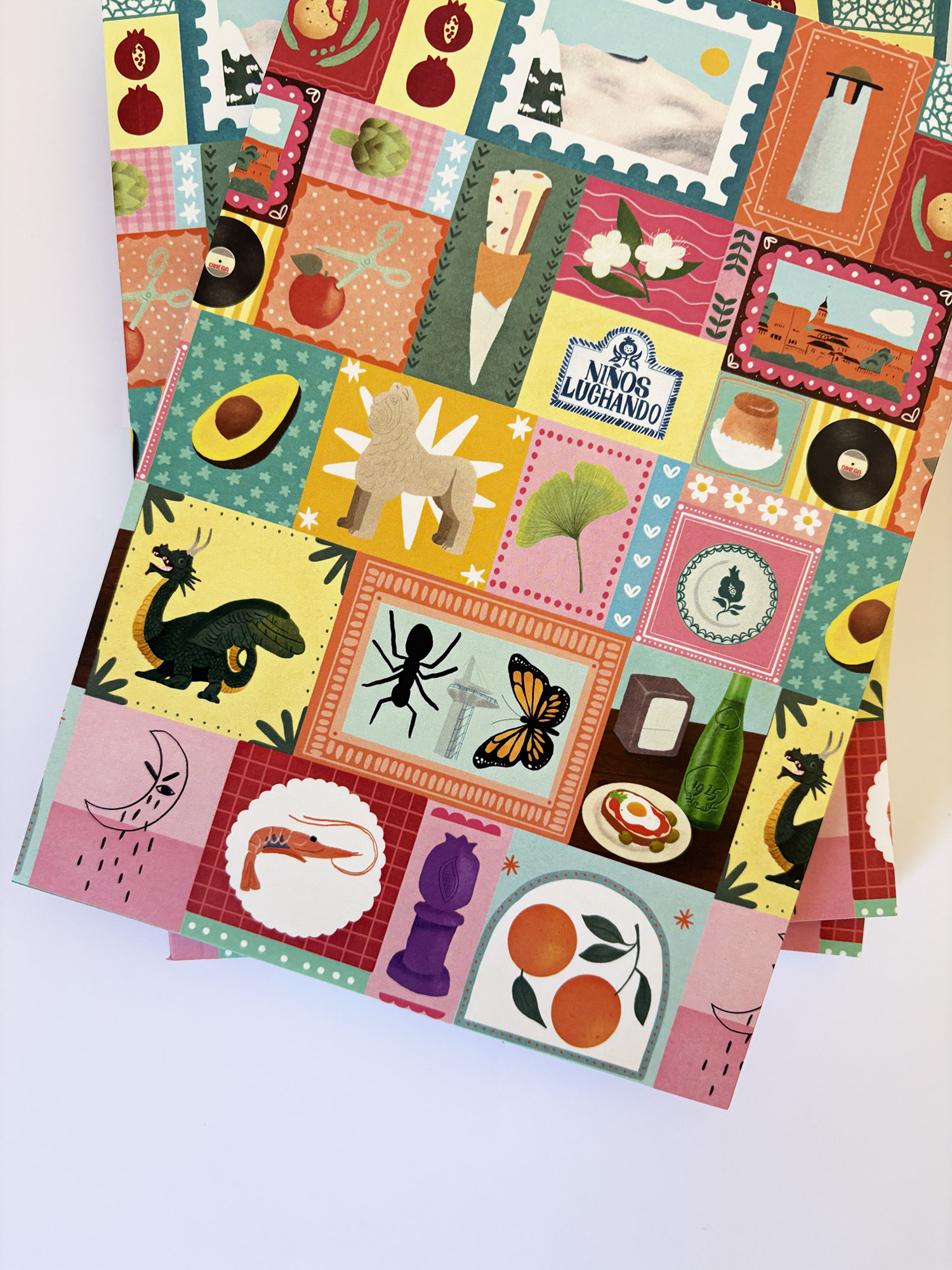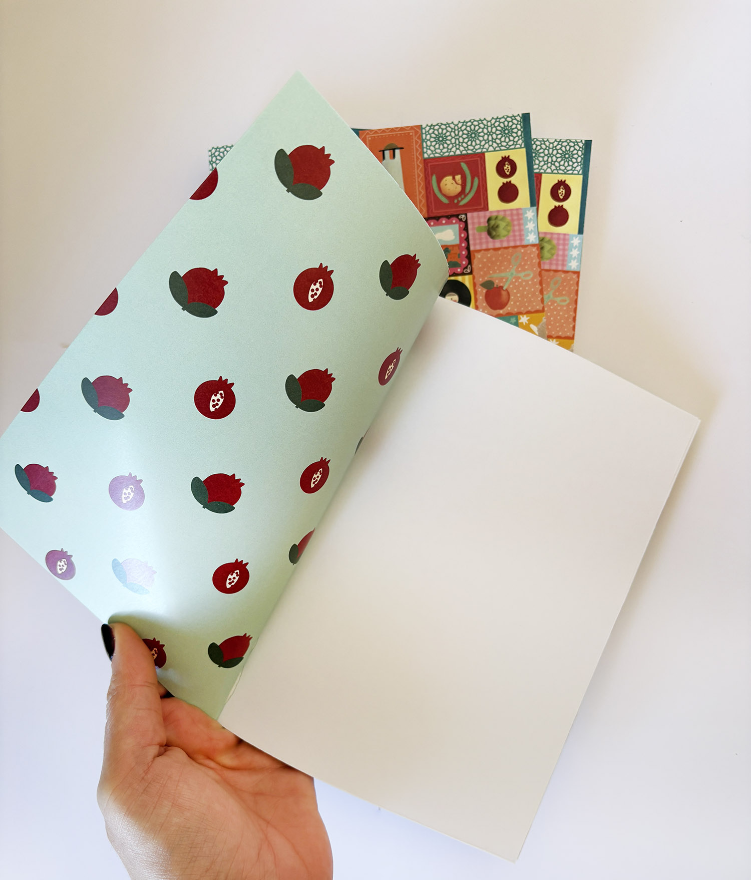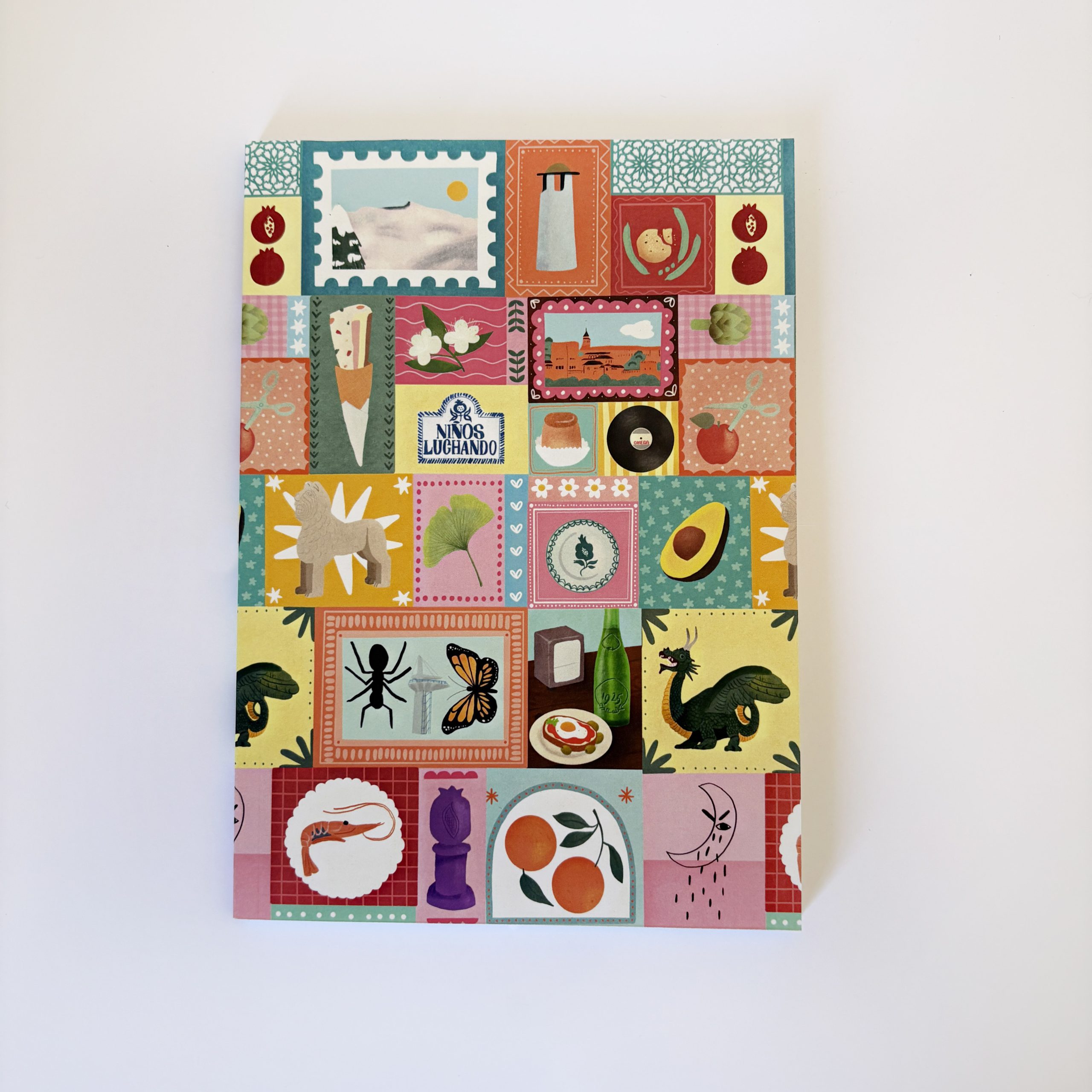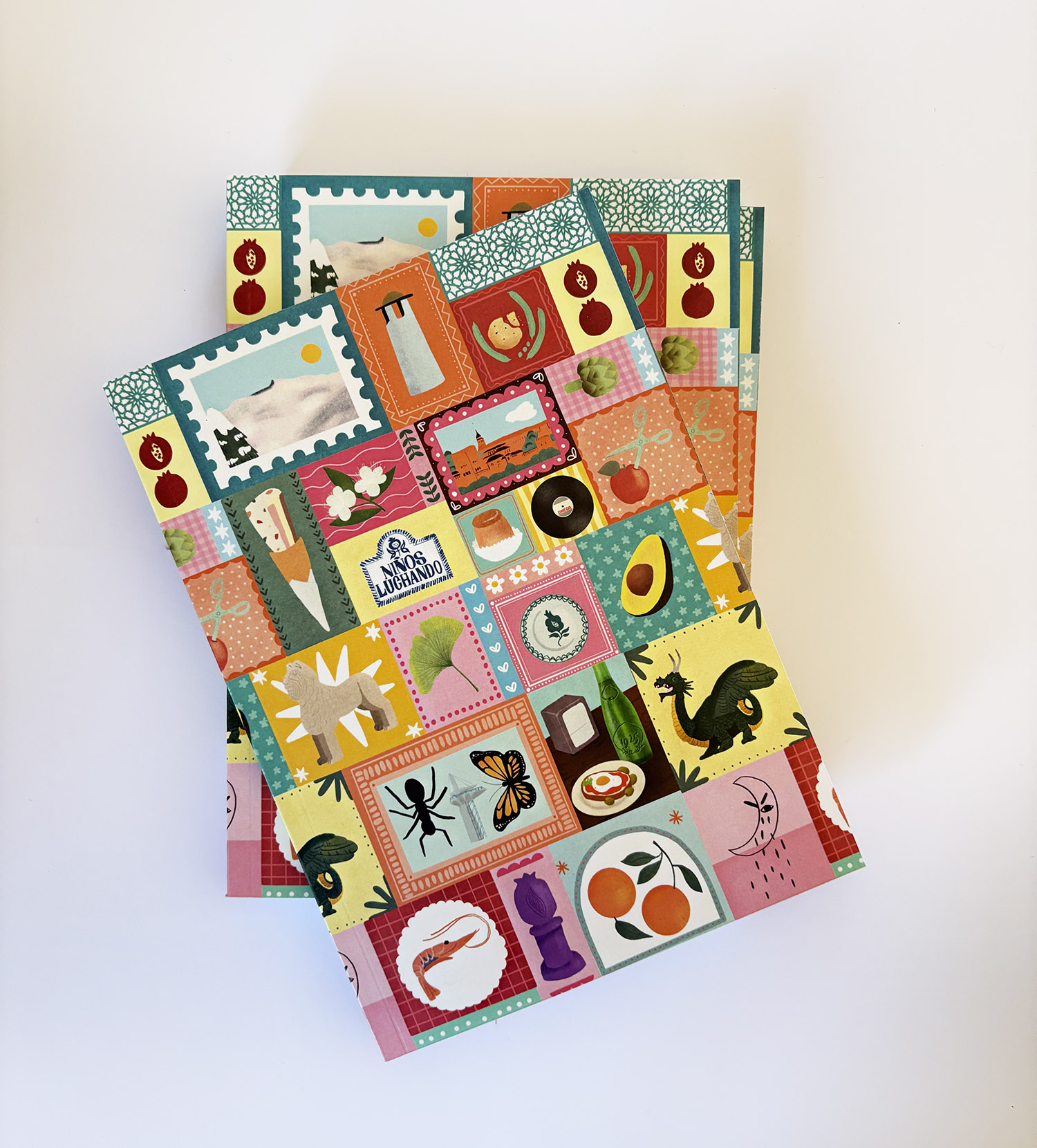 Cuaderno Como Graná, Ná, con estampado exclusivo y diseñado por Manidaje. En él, podemos observar algunos de los elementos más representativos de Granada y provincia, y que la hacen tan especial.