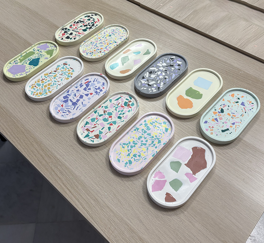 Aprende a elaborar objetos decorativos con resina acrílica, un tipo de resina natural y no tóxica, con un resultado resistente y duradero, parecido a la cerámica. En el taller elaboraremos una bandeja muy práctica, que decoraremos con efecto terrazo. ¡Juega a combinar colores para un resultado único!